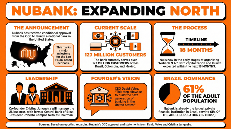 Nubank在获得美国货币监理署(OCC)的有条件批准后,正在向美国扩展,推出Nubank N.A.