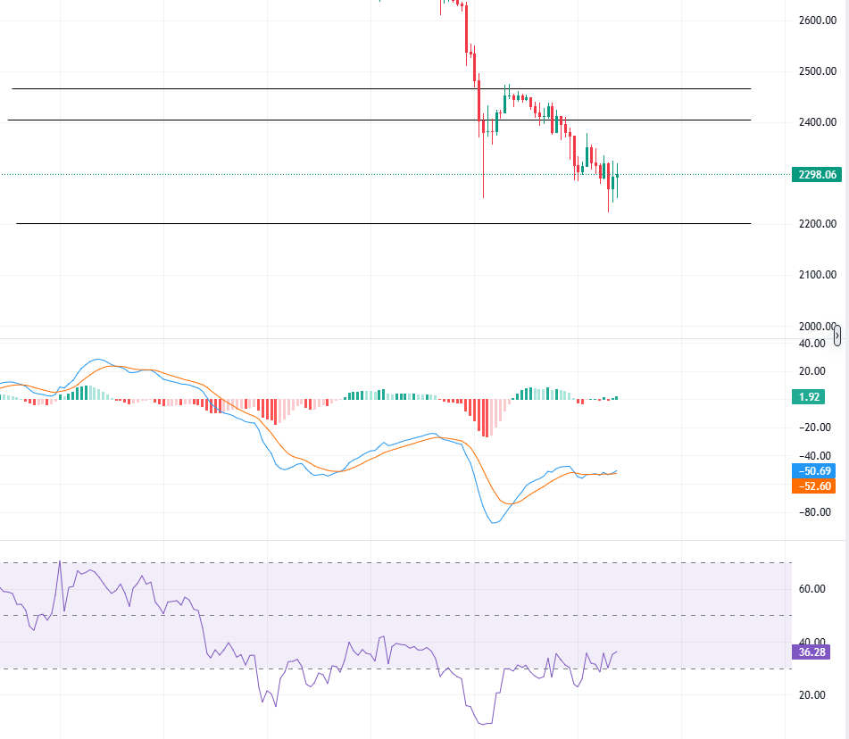 支撑位:以太坊的短期支撑位集中在 2250-2200 区域,如果此区间支撑有效,可能会促使反弹修复。但若跌破此支撑,则可能进一步测试 2000 区域的支撑。