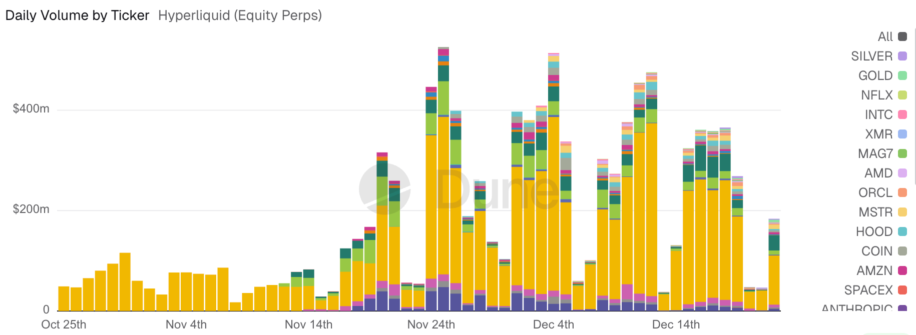 Figure 3. Hyperliquid perp volume. Source: https://dune.com/queries/6406768/10176988