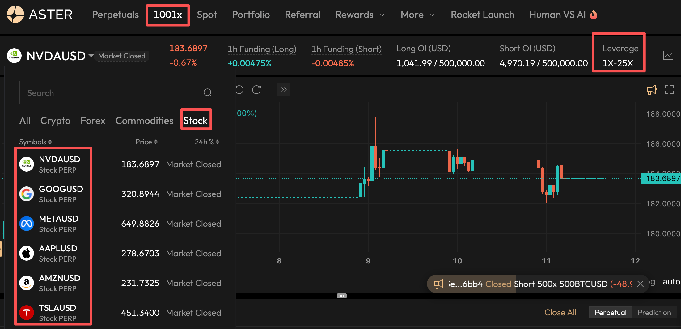 Figure 4. Aster simple mode stock perps. Source: https://www.asterdex.com/en/trade/1001x/futures/NVDAUSD
