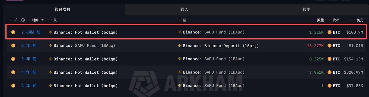 币安承诺的买入10亿美元比特币的基金已经开始动起来了