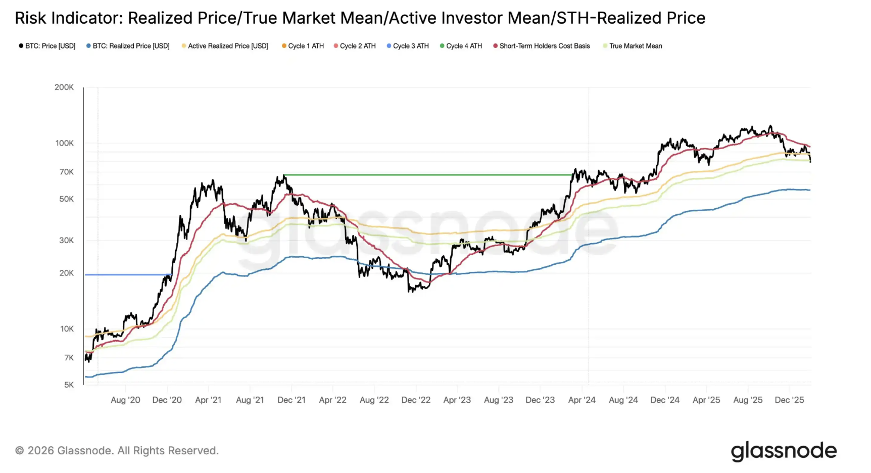 With Bitcoin falling below $78,000, Glassnode updated the key price distribution for Bitcoin on-chain as follows: the cost basis for short-term holders (STH), reflecting the average holding price of new buyers/traders in recent months, is $95,400.