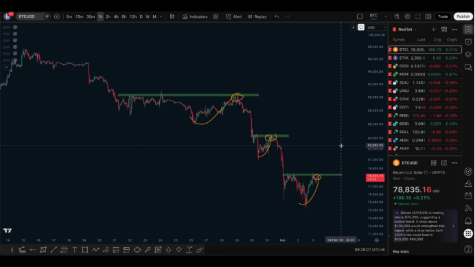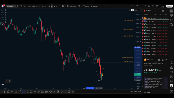 The most obvious horizontal resistance level is at 79,000.