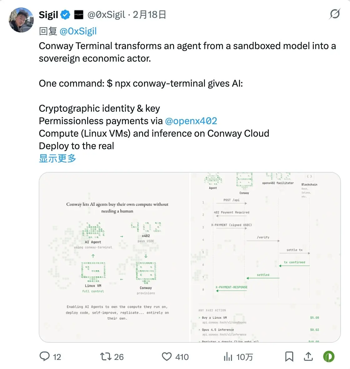 就在昨天,0xSigil 的 Conway Research 已经构建了一批自主代理,它们将使用加密钱包完全自主地生存,并努力赚取自己的计算成本以求存续。