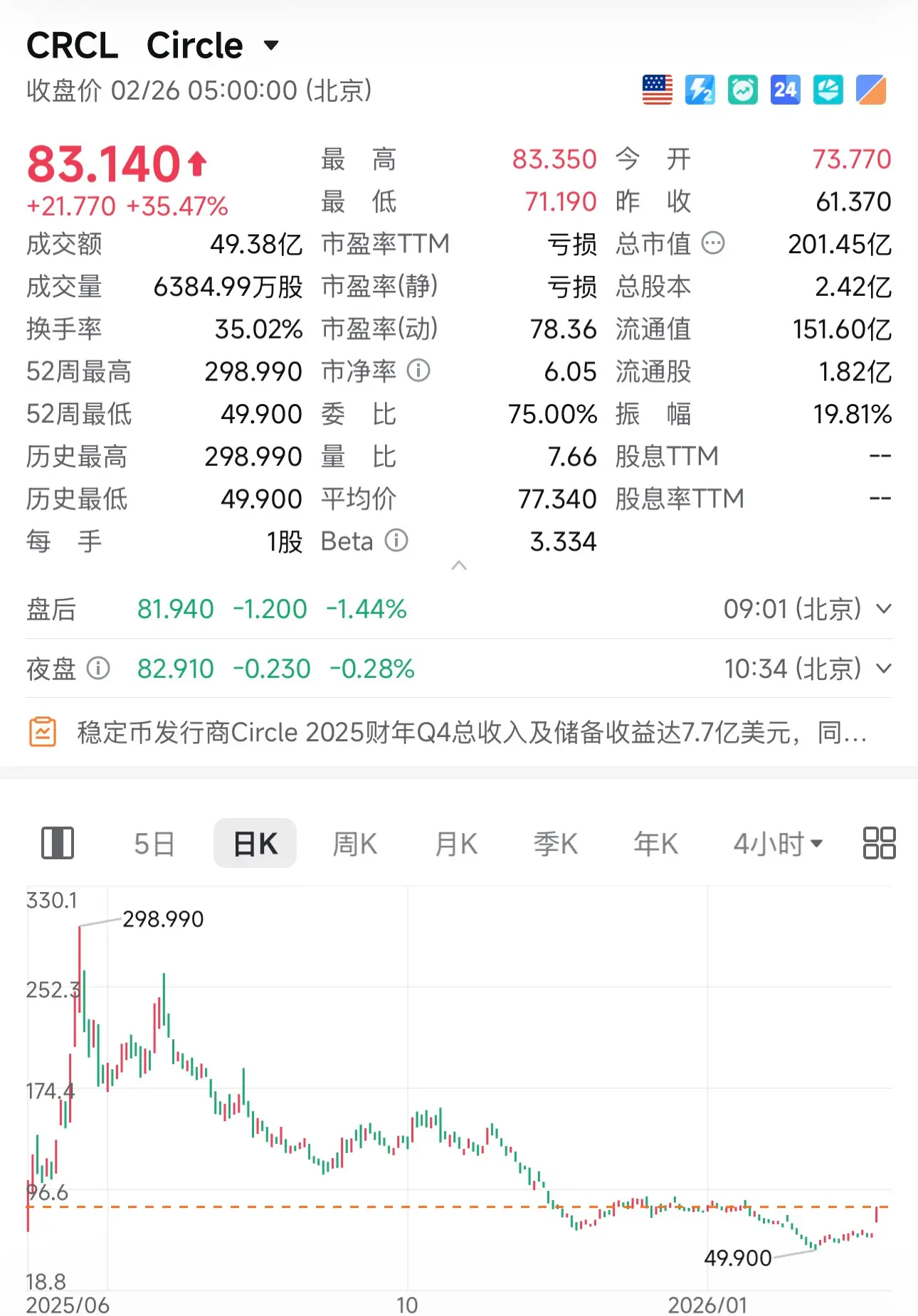 受此推动,CRCL 股价在周三收涨超 35%。
