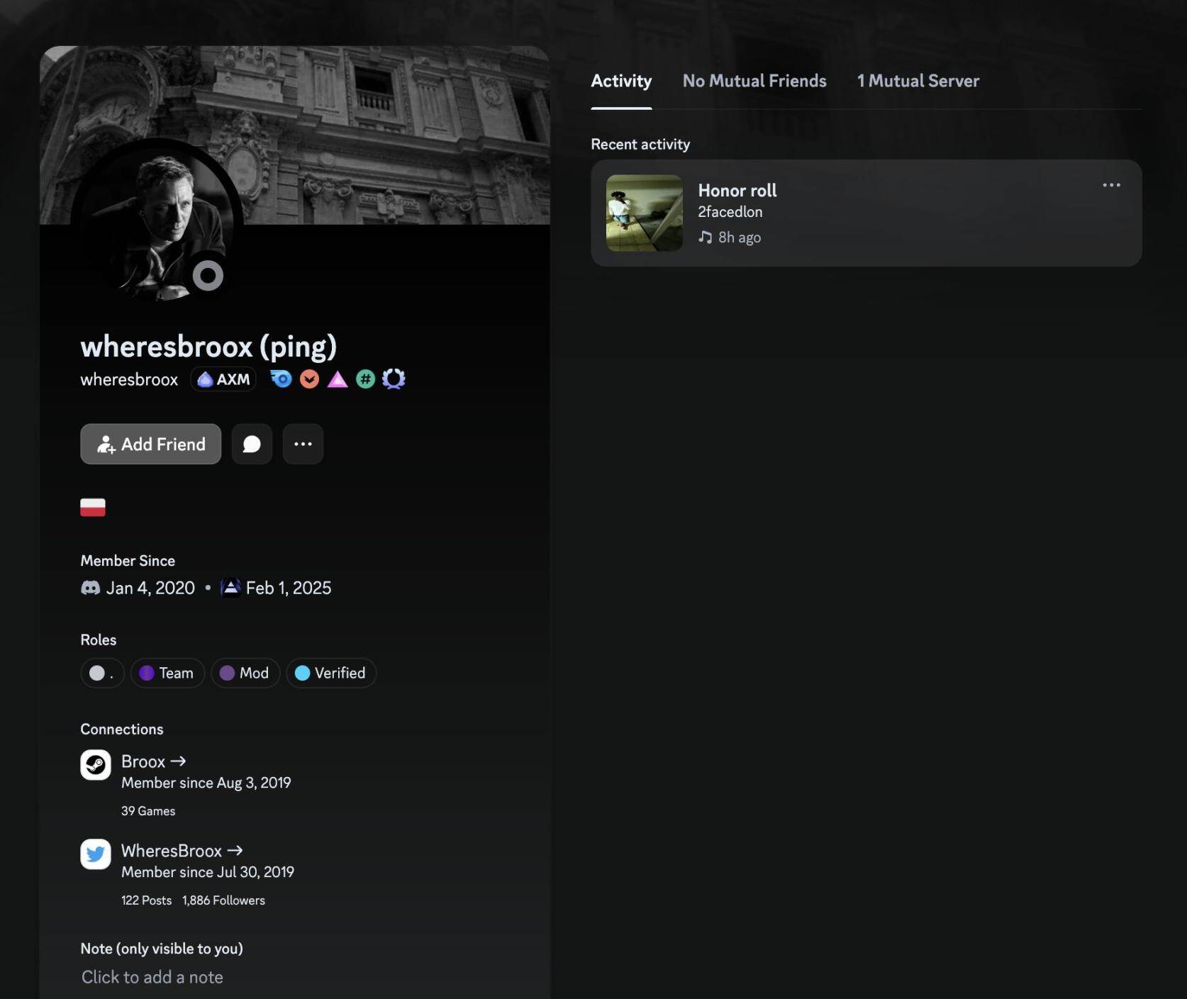 Broox was on the call with his friend Gowno (Seb), a moderator who recently joined Axiom.