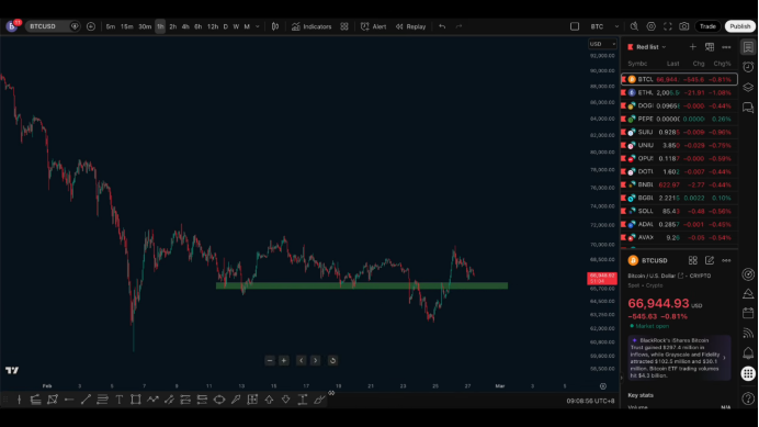 If the 65,000–66,000 area can effectively hold, forming progressively higher swing lows, then the market has a chance to:
