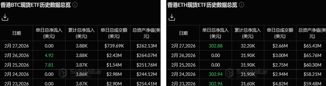 上周,香港比特币现货 ETF 净流入 12.73 枚比特币,资产净值达 2.62 亿美元。其中发行商嘉实比特币持有量降至 219.69 枚,华夏增至 2510 枚。