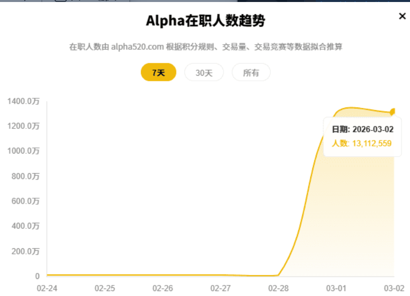 今天给大家同步币安 Alpha 在线人数的核心数据,这几天我盯了 1 号前后的数据变化,Alpha 巅峰期有 50 万人参与,现在估计只剩 13 万人,要是再不安排新空投,人数大概率会降到 10 万才能达到平衡。