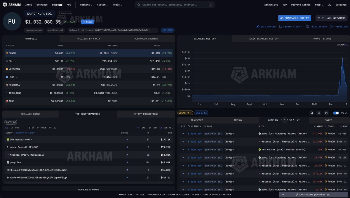 punchkun.sol purchased almost 10% of the supply of PUNCH for $8,000. He turned that into over $3.1M at the top - and cashed out over $550K from his stack of PUNCH along the way. $530K of this was deposited to Binance.