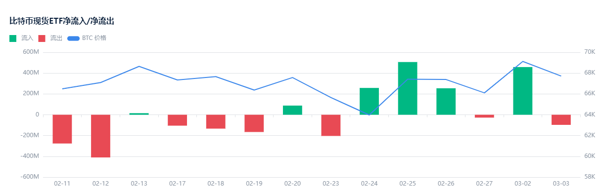 数据显示,过去五个交易日,美国现货比特币ETF逆市吸金约15亿美元 。仅3月3日单日,净流入就达到4.582亿美元,交易额飙升至58亿美元,创下2月初以来的新高 。