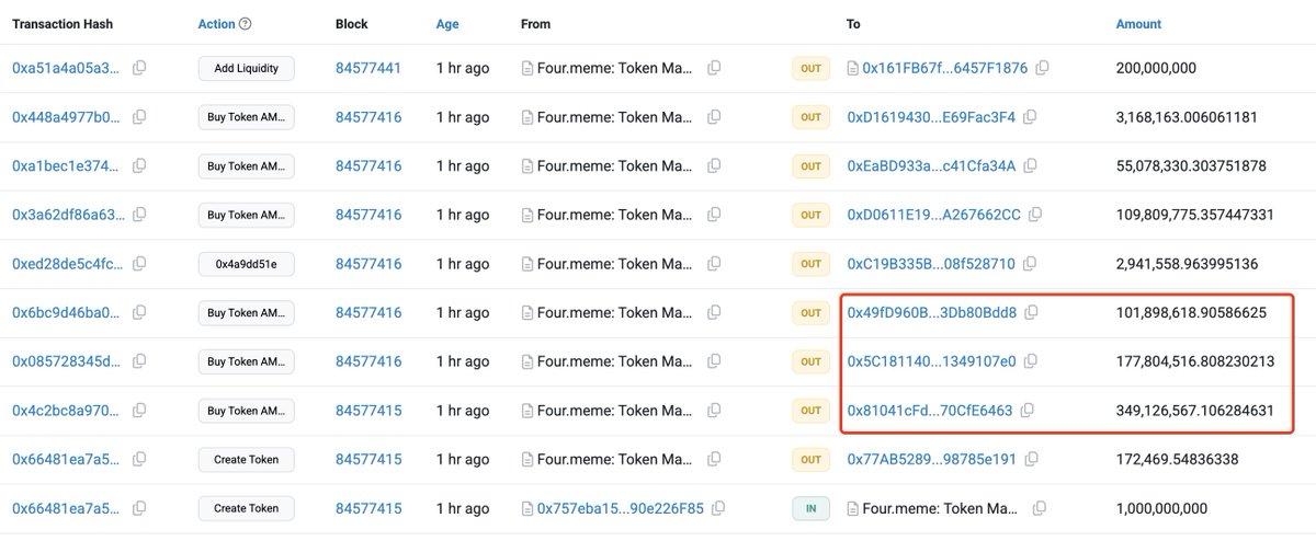 三名狙击手在发行后立刻以8.8 $BNB($5,628)购买了628.83M $AGENT(占供应量的62.88%)。