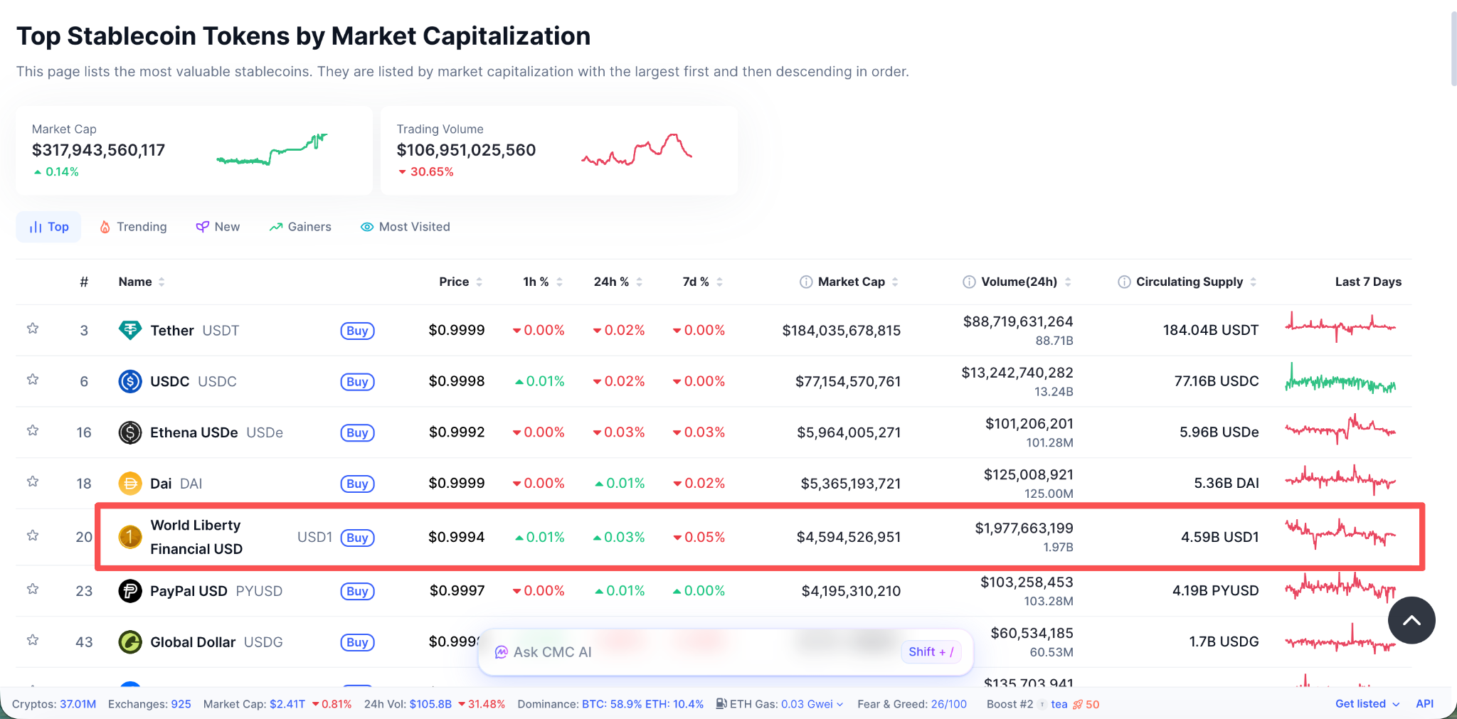到 2026 年 3 月,USD1 流通市值已达约 45 亿美元,稳居全球稳定币排名前五。但这一规模的背后,有一些细节值得注意:据数据分析平台 Kaiko 的研究显示,USD1 在 PancakeSwap 上超过一半的流动性来自与 WLFI 团队关联的做市商钱包,而非真实的市场交易需求;美元计价的月活跃用户规模,与 USDT、USDC 这些老玩家相比仍有量级差距。政治背书是最强的营销资源,但它无法替代真实的市场深度。