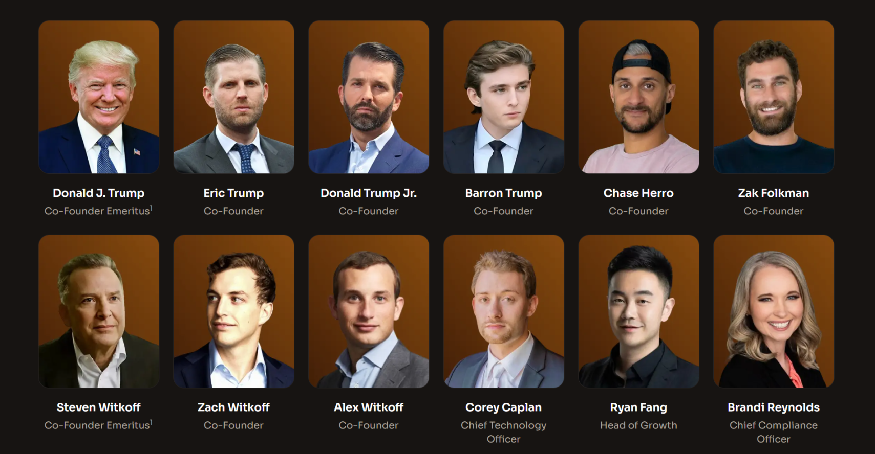 另一加密项目 WLFI,其团队高管则是由特朗普家族与 Witkoff 家族组成,其中特朗普家族中,包括特朗普的长子 Donald Trump Jr、次子 Eric Trump 以及挂名的小儿子 Barron 均位列其中。
