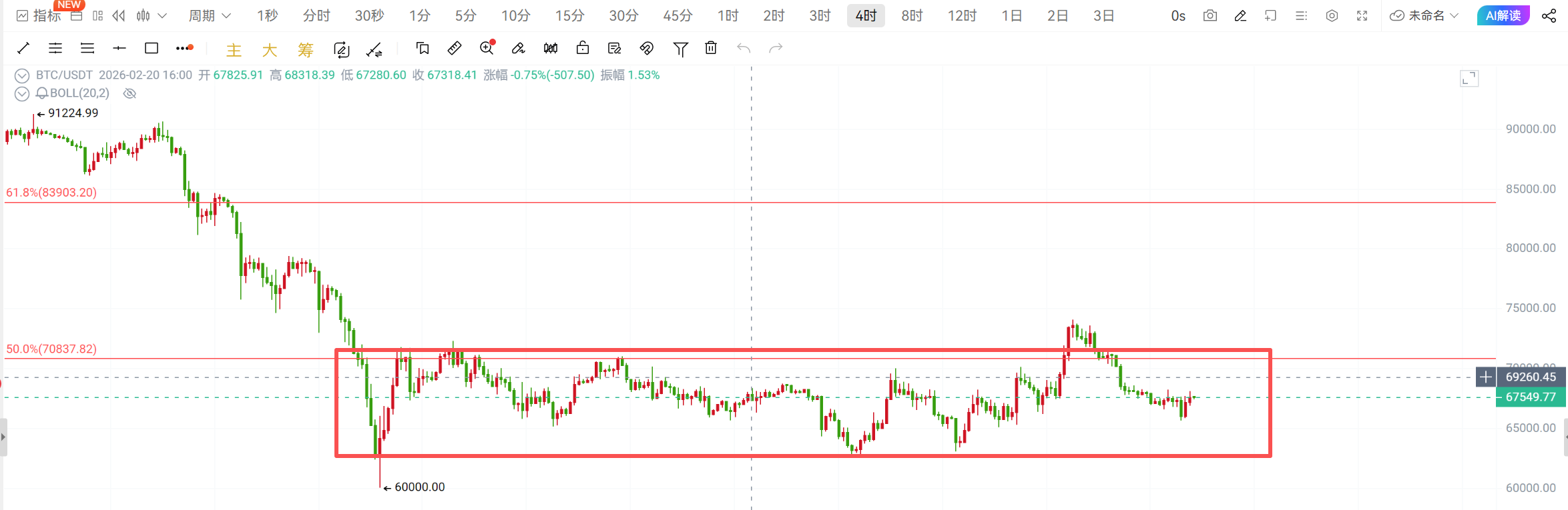 大饼68000-68500做空,目标67000-66000,69500上方损;