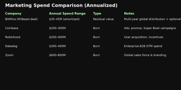 如果你对 2 亿美元投 MrBeast 这笔交易心里犯嘀咕,不妨换个角度想想:把 BitMine 这笔投资,不看作一次投机押注,而是一份长达多年的全球营销和分销协议。这么一看,是不是就正常多了?甚至可能很聪明。