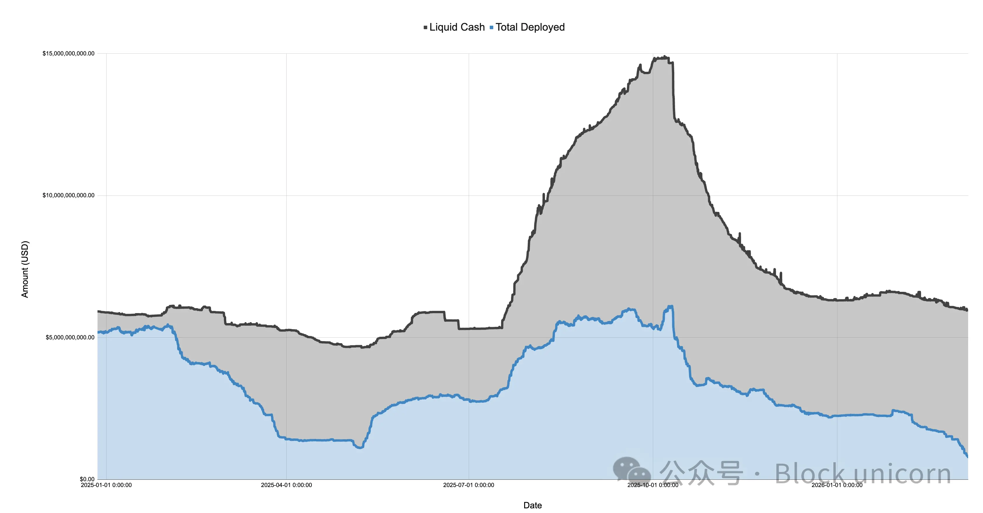 2025 年市场在 1 月份 $TRUMP 代币推出后急剧转向风险规避情绪,随后在初步关税讨论以及 4 月份的“解放日”期间持续下滑。在此期间,Ethena 的已部署资本从超过 50 亿美元暴跌至仅 11.08 亿美元左右,跌幅超过 75%。