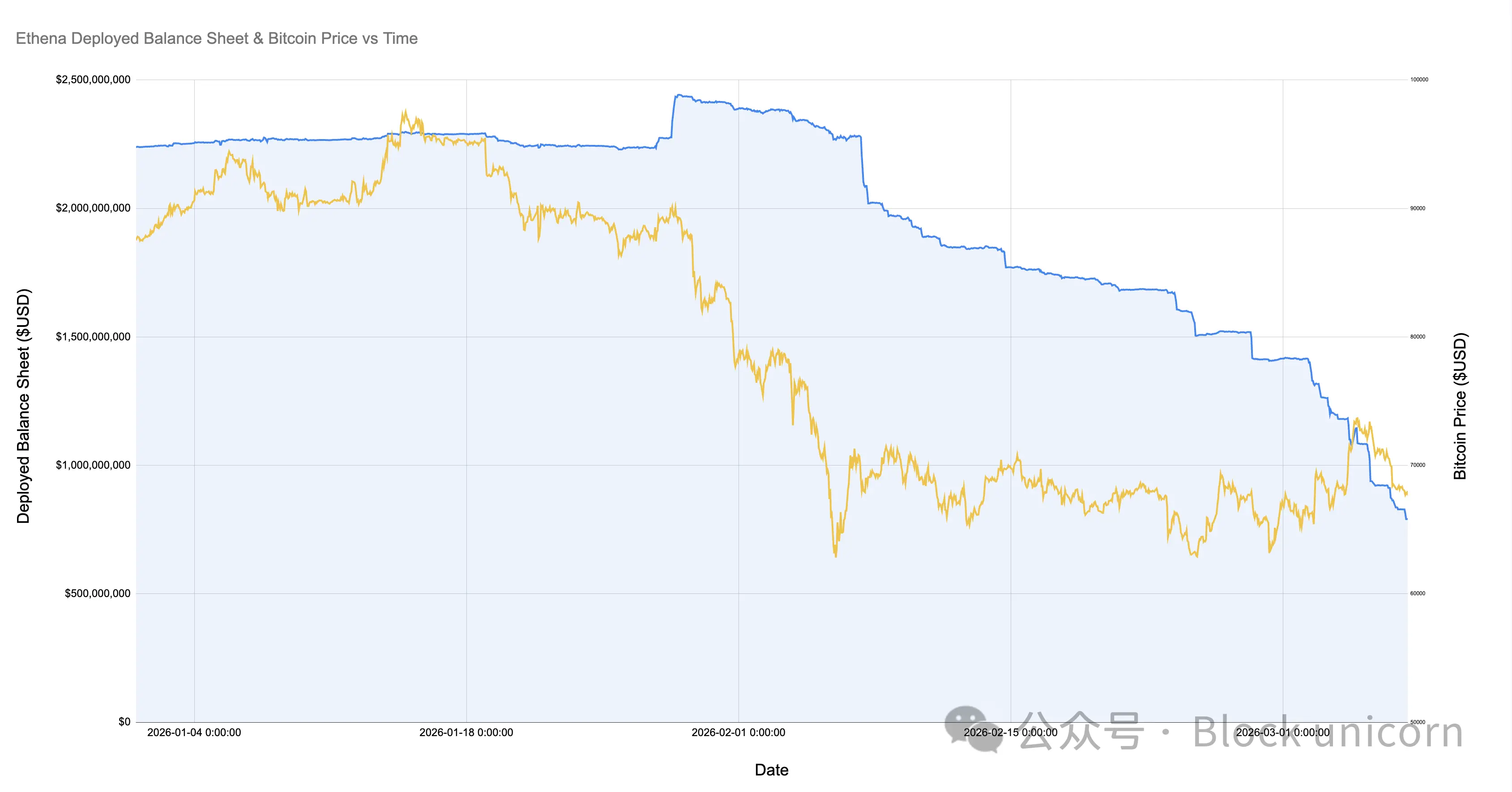 (图表:Ethena 已部署资本与比特币价格走势 2026)