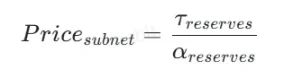引入的「动态 TAO」机制通过自动化做市商(AMM)为每个子网创建了独立的价值储备池,其价格由 TAO 与 Alpha 代币的比例决定: