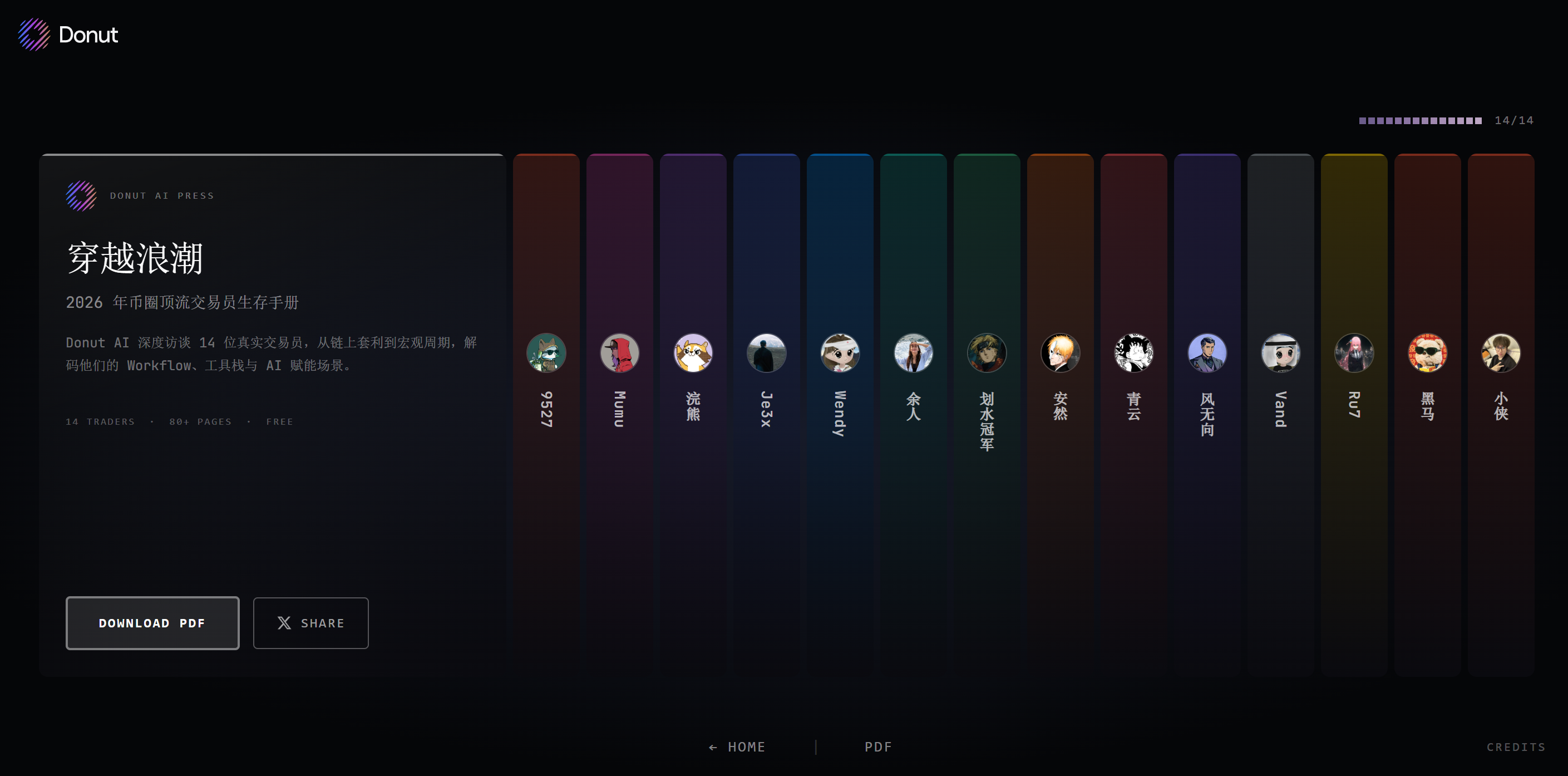 这本手册献给所有正在构建自己交易系统的人。通过对 14 名顶尖交易员生涯和思路的解构,我们 Donut 团队总结出了交易系统的本质,以及构建和优化此系统的思路与方法论。市场流动性潮涨潮落,交易系统是能够承载财富驶向更远的坚固之船。