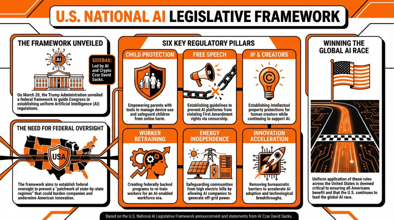 在3月20日,特朗普政府公布了美国国家人工智能政策框架,旨在解决民众对这些技术采纳及其未来影响的几项担忧。