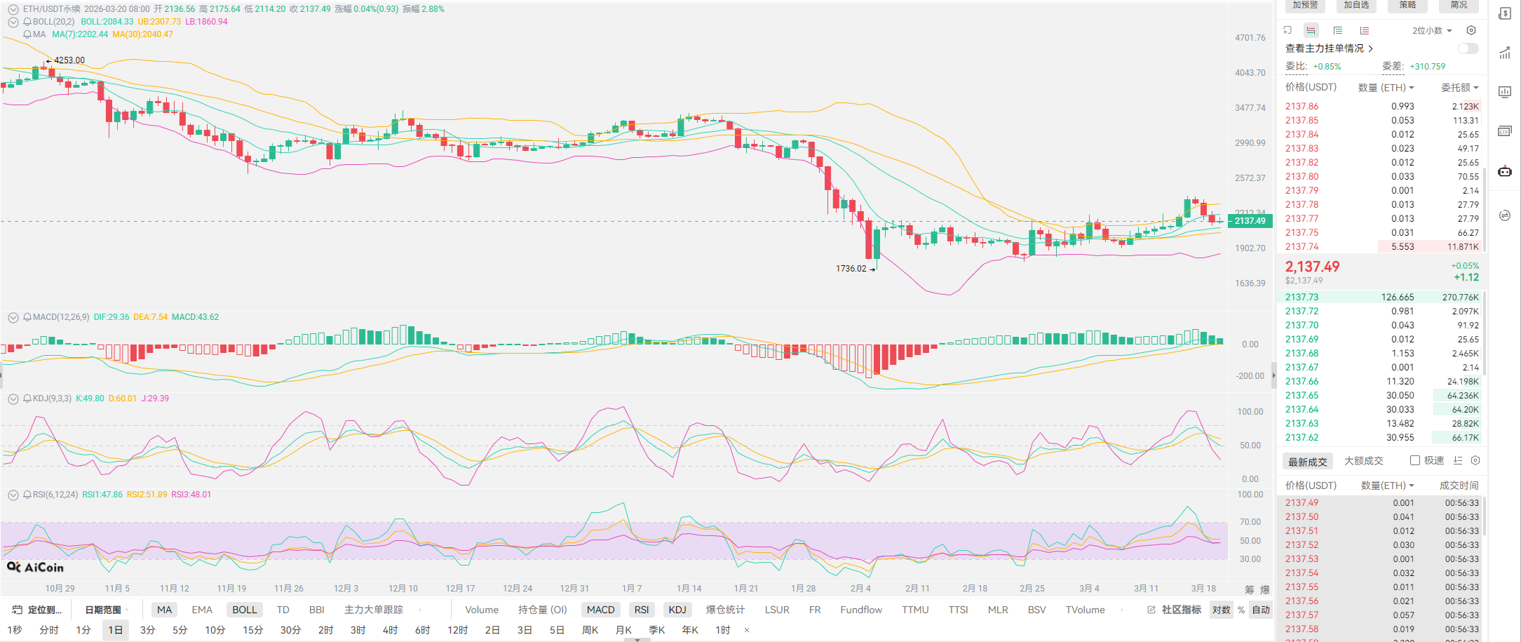 看了一眼行情,没有太多可聊的,比特币依旧对7W关口产生疯狂的争夺,而以太对2100的关口也在同步换手。为何老崔会对7W关口产生支撑的想法?这也是数据给出的反馈,大家对巨头的动态需要有一定的应激反应。从微策略与贝莱德的抄底资金来看,这两位在7W关口分别投入近50亿的资产配置,那么对短期来讲,7W将会成为他们认可的购入价位,至少在短期内这个位置是可靠的。同时76000关口的卖出,各位是需要寻找另一出口,那就是远古的钱包依旧处于卖出的窗口之上。买跟卖这并不是统一巨头,大家就可以将多头的支持者列为贝莱德与微策略,而其它钱包的卖出则是个人巨鲸,这就是老崔前期对于换庄牛市的定义,贝莱德的操盘一定会将市场带入正轨。
