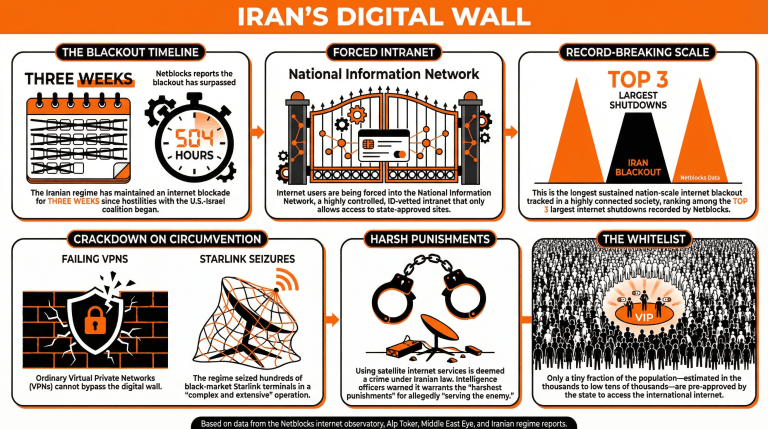 • 为什么伊朗目前会经历大规模的互联网黑暗期? 在与美国-以色列联盟的持续敌对行动中,政权已迫使用户进入国家控制的内部网超过三周。