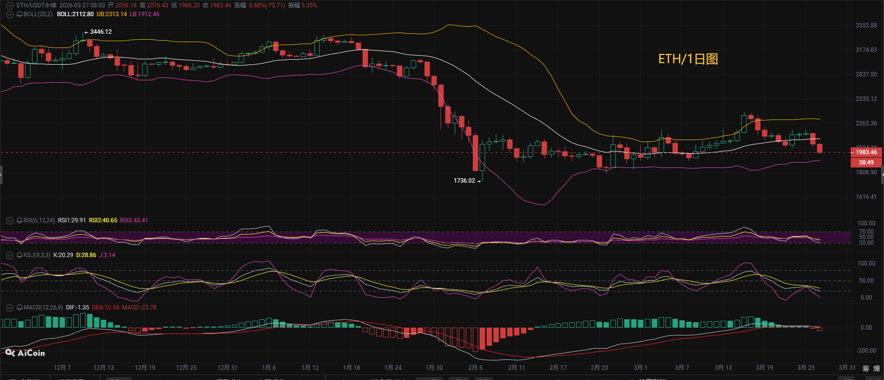 币先生:3.28以太ETH今日最新走势解析预测分析.内附操作策略