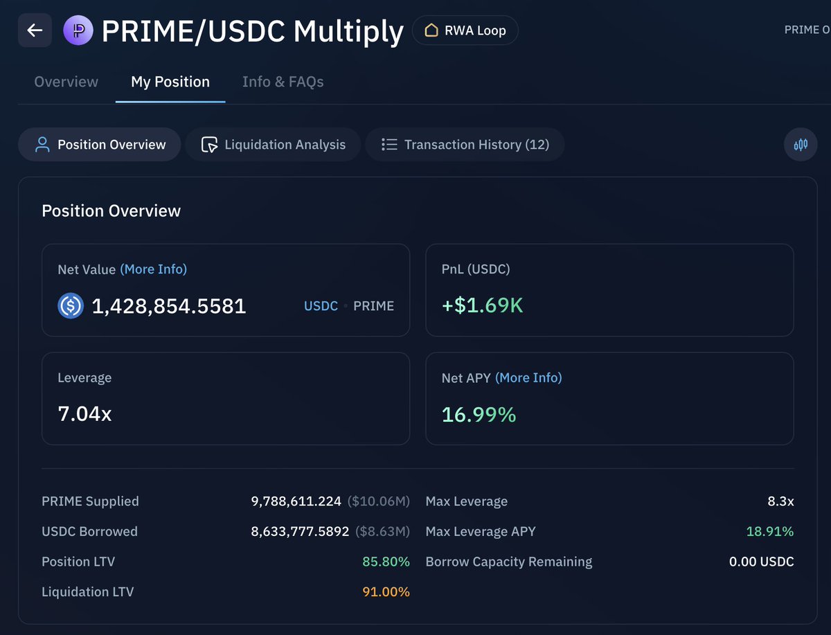 Kyle Samani has loop-deposited a total of $10M worth of PRIME into Kamino Finance, and borrowed $8.6M USDC against it.
