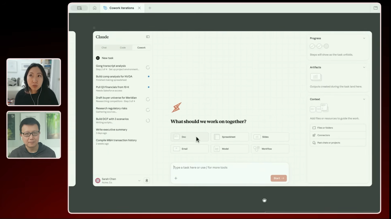 • 那句“他们 10 天就做出来了”的说法,其实是从某次访谈或媒体报道中被截取出来的。但真实的情况是,关于 Cowork 这个方向,我们其实从我一年前加入 Anthropic 时就已经开始构思了,我们一直在思考如何打造一种能够帮助所有通用知识工作者的“思维伙伴” (thinking partner)。