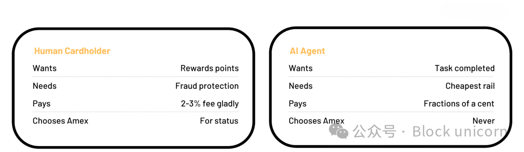 AI代理不需要这些。它不会对费用提出异议,也不会要求退款。收取这笔费用的合理性在于,它能够防范人为错误、欺诈和冲动行为。如果交易中没有人类参与,这笔费用就完全失去了意义。