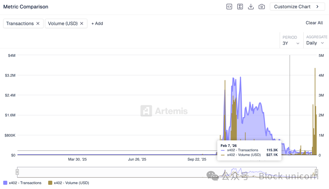 x402的交易量已突破 5000 万笔。虽然单笔交易金额很小,但交易数量表明该基础设施正在被使用。开发者正在基于此进行开发。接受代理付款的商户端服务也在不断发展壮大。支付网络就是这样起步的。