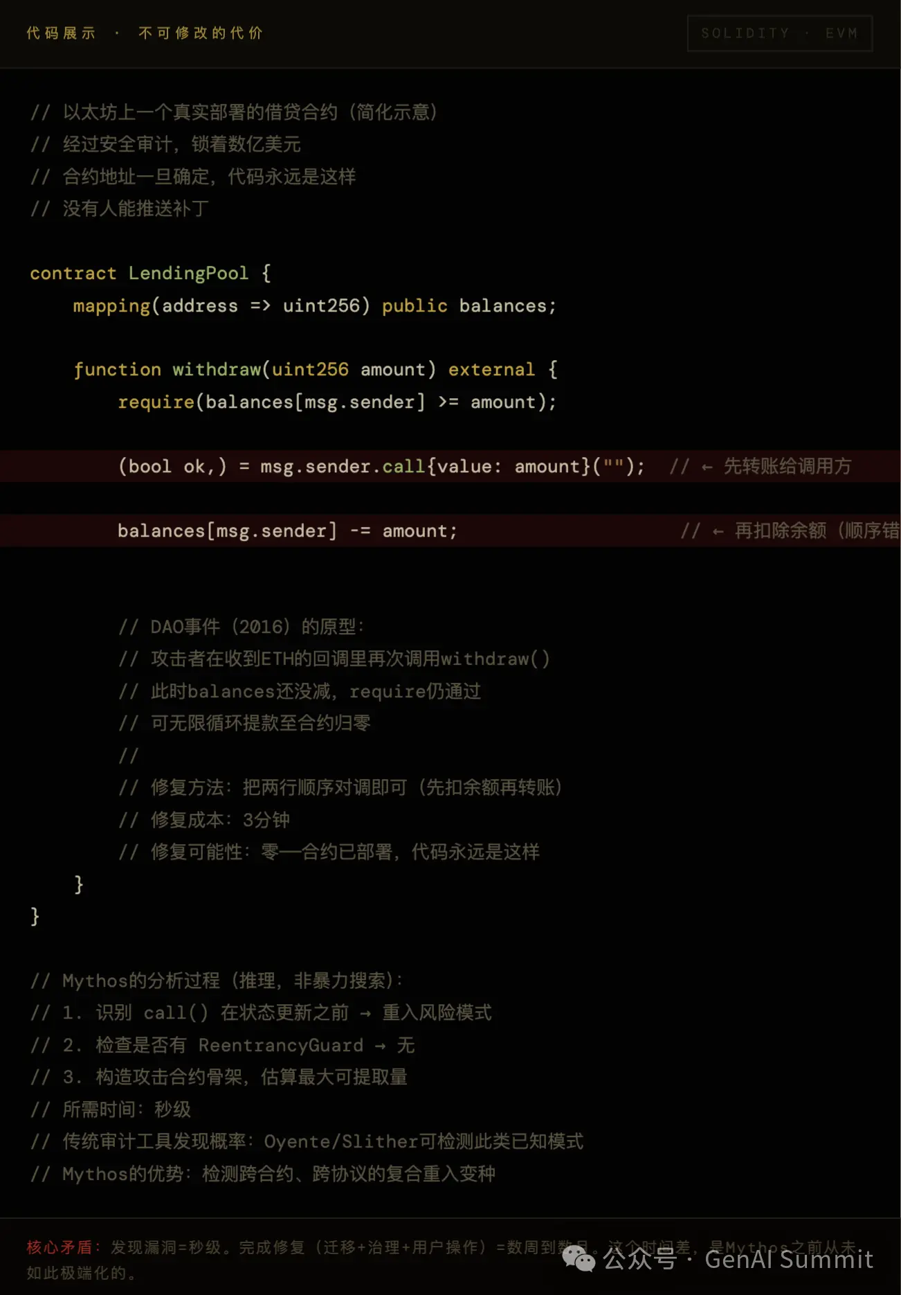 Such cross-contract semantic vulnerabilities are the source of the largest losses in history from attacks. Audits are usually within the scope of a single contract; Mythos's analysis covers the entire call graph.
