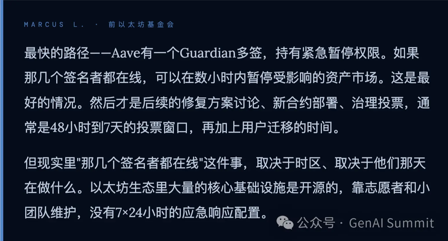 Alan asked Marcus: If tomorrow Mythos discovers a serious vulnerability in Aave that endangers billions of dollars, how soon can the Ethereum ecosystem respond effectively?