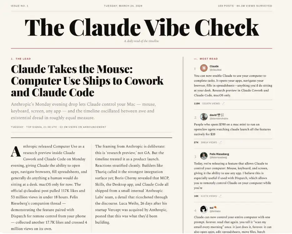 For example, many people, including myself, use this method to generate daily summaries (such as summary updates from platform X or GitHub, or progress reports from a team of agents). Below is an example of a daily summary of X events that I use regularly.
