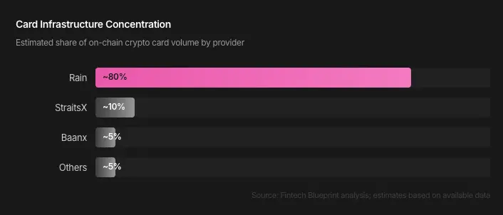 发卡机构(Rain、Reap、Baanx、StraitsX):链上世界与传统金融之间的受监管桥梁。最重要的结构性发展是全栈发卡机构的出现——这些公司直接拥有 Visa/Mastercard 的主要会员资格,绕过了传统赞助银行。