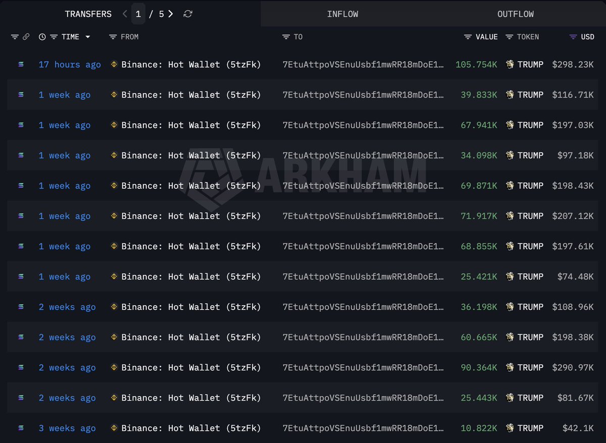 鲸鱼 7EtuAt 于 17小时前从 #Binance 提取了另一个 105,754 个 $TRUMP(29.8 万美元),目前持有 1.13M 个 $TRUMP(320 万美元)。