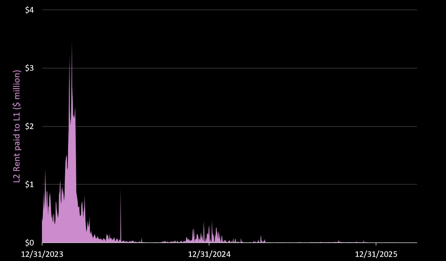 第一季度,L2 总计仅向 L1 支付了13.5 万美元(创下有记录以来最低单季水平),环比下降 82%,同比下降 89%。这一数据背后的原因是什么?