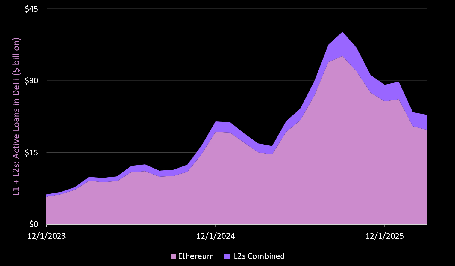 以太坊 L1 上的活跃贷款总额在第一季度下降 22%,但同比上涨 35%。