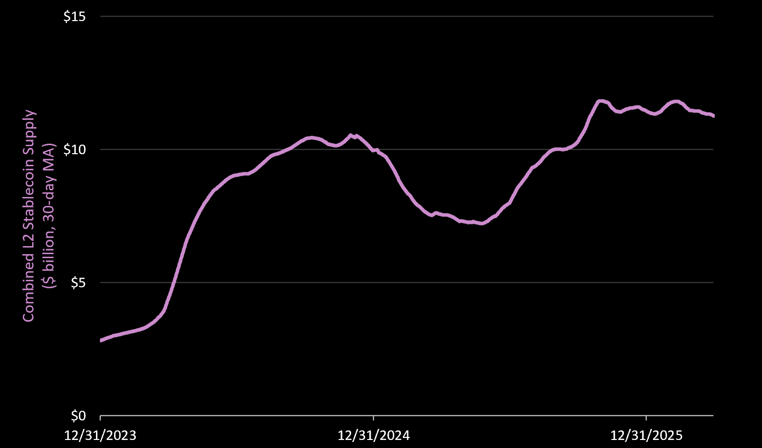 Base(季度增长 3%)占 L2 稳定币供应的42%‘;
