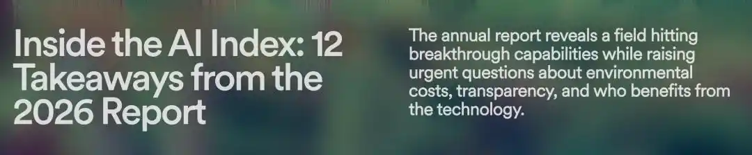 4 月 13 日,斯坦福 HAI 重磅发布「2026 年 AI 指数报告」!