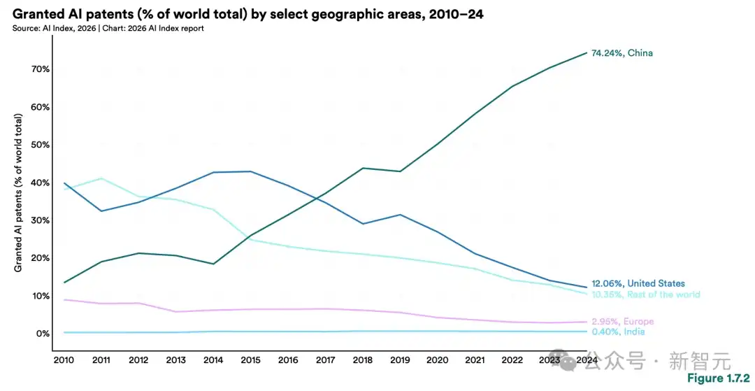导语:斯坦福「2026 年 AI 指数报告」重磅出炉!这份 432 页长文含金量极高:中美 AI 巅峰对决,差距几乎抹平,缩减至仅 2.7%。全球顶尖 AI 年产 95 个,基本都聚集在大厂。最残酷的是,22-25 岁开发者的就业已被切掉 20%。