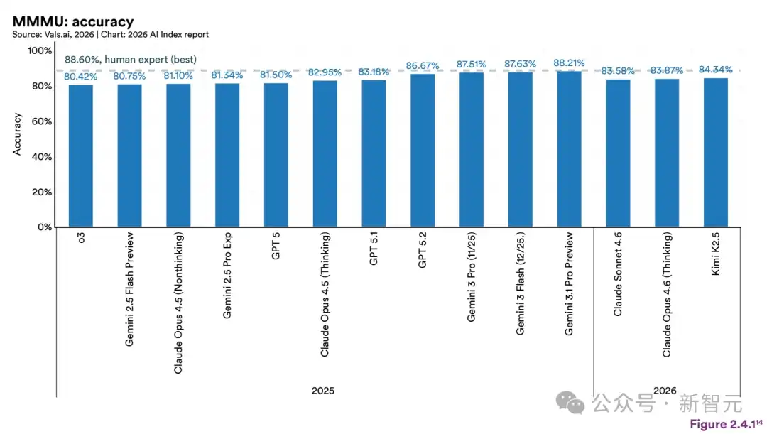 PhD 级科学问答(GPQA Diamond)、竞赛数学(AIME)、多模态推理(MMMU)这些原本被认为「人类不可超越」的硬骨头,全部被前沿模型啃了下来。