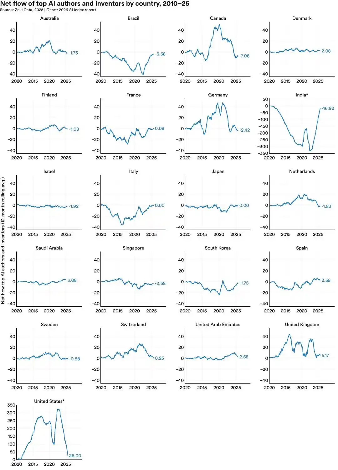 · 进入美国的 AI 研究人员 7 年跌 89%,仅过去一年就跌 80%