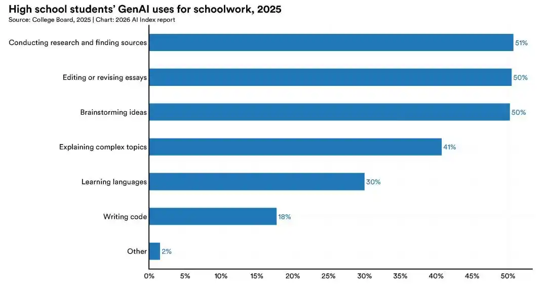 美国有 4/5 的高中生和大学生现在用 AI 完成学校作业。但只有一半的中学有 AI 使用政策,只有 6% 的老师认为这些政策写得清楚。
