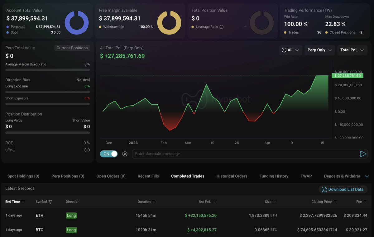 与 #Matrixport 相关的鲸鱼在过去两天内关闭了 4 个钱包中的所有做多订单 — 1,500 个 $BTC(1.1235 亿美元)和 120,000 个 $ETH(2.86 亿美元) — 实现了总利润为 5,900 万美元!