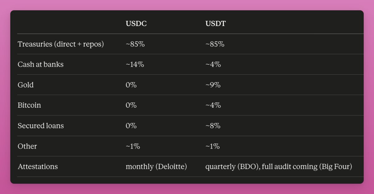 最新的泰达币2025年第四季度的证明显示USDT的支持结构为: