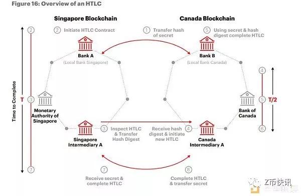 由于BoC与MAS的区块链项目,分别构筑在Corda和Quotum两个区块链上,所以HTLC需要充当桥梁的作用,将两者连接起来。