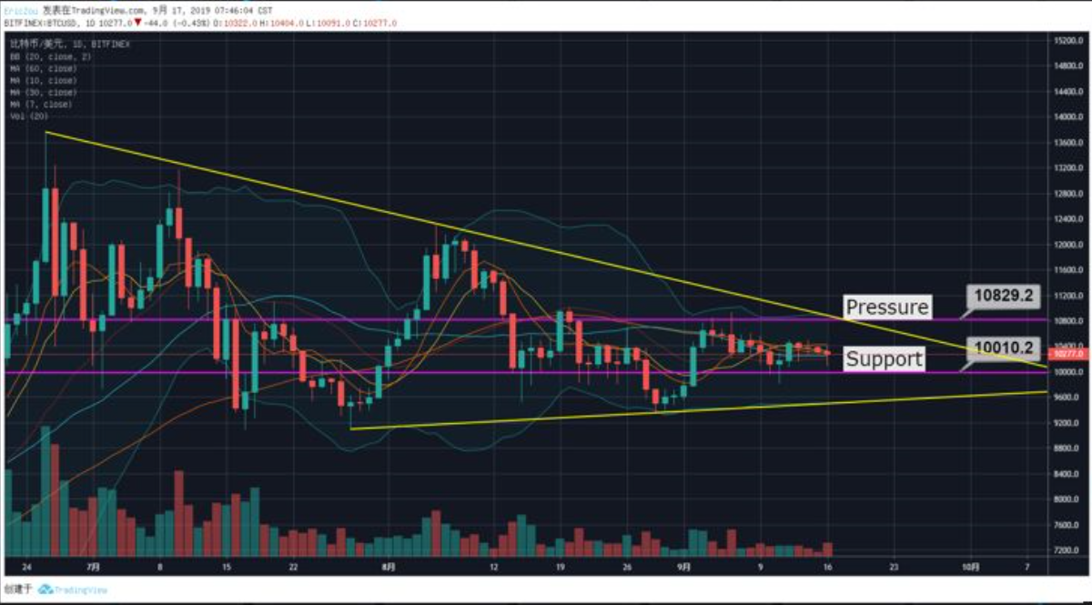 总结:昨日比特币向下试探10100美元位置后小幅反弹,仍然处在横盘震荡位置。相比之下,以太坊出现了较明显的反弹,连续数日涨幅靠前,ETH/BTC连续一周回升。目前随着比特币上下压力位置逐渐靠近,震荡区间进一步压缩,其它主流币种短期对比特币汇率回升,但是正如之前所说的,如果比特币不能出现牛市,那么其它币种的优秀表现也将只是昙花一现。