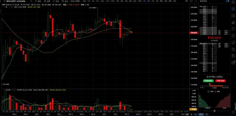 在5.10日暴跌之后,从图上看反弹力度比较弱,而大盘BTC跌破9800之后,日线还没有站上9800, 联动的BSV难以看出是要继续拉的迹象, 所以跟随BTC进行震荡调整是大概率事件,观望为主,等主流山寨止跌再进。